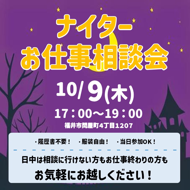 - 🌙10月9日 ナイターお仕事相談会🌙