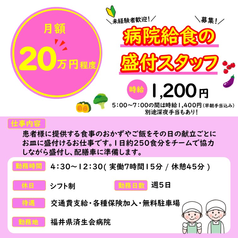 患者様に提供する食事のおかずや、ご飯を盛り付けるお仕事です!