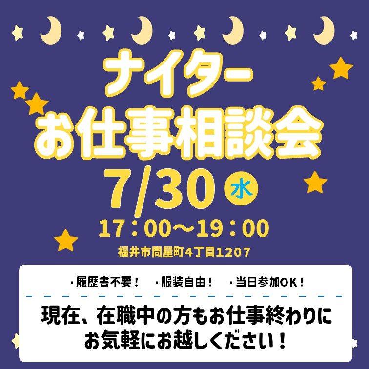 ★7月30日★ナイターお仕事相談会のお知らせ