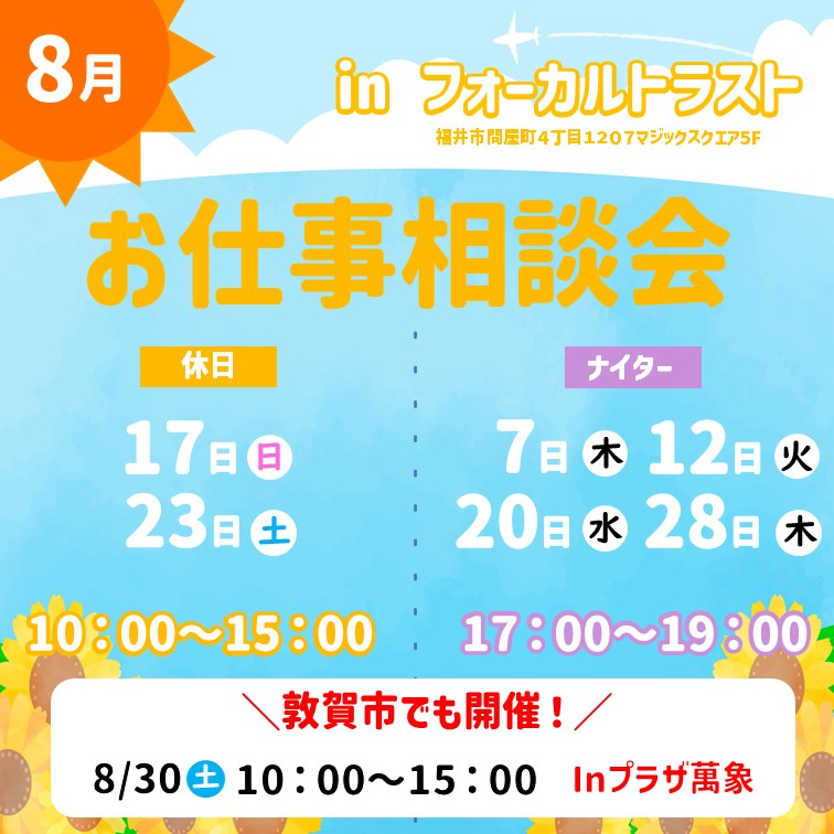 8月のお仕事相談会の開催日はコチラ!