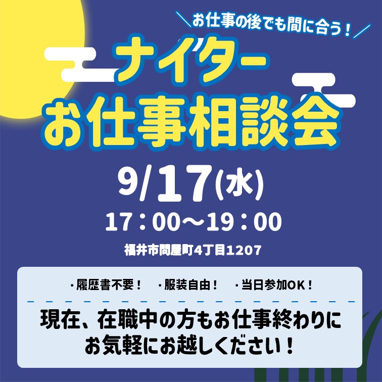 🌙9月17日ナイターお仕事相談会🌙