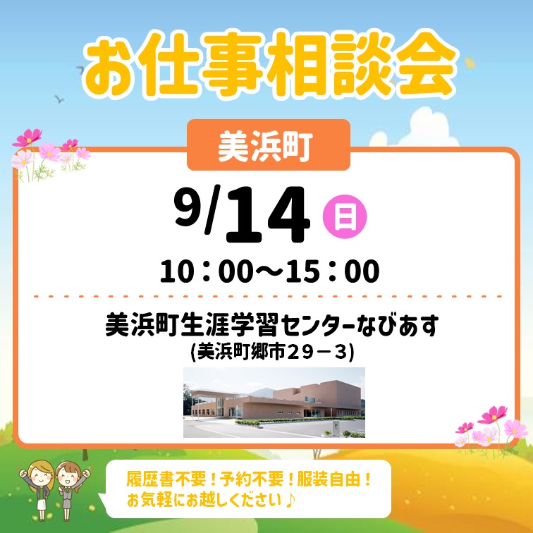 〈9月14日〉美浜町でお仕事相談会開催します!